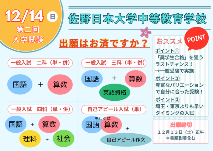 【入試室】 出願はお済ですか? (第二回入学試験)