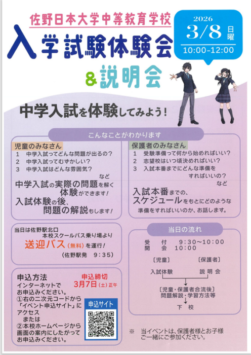 【入試室】 3月8日(日)はぜひサニチへ!!