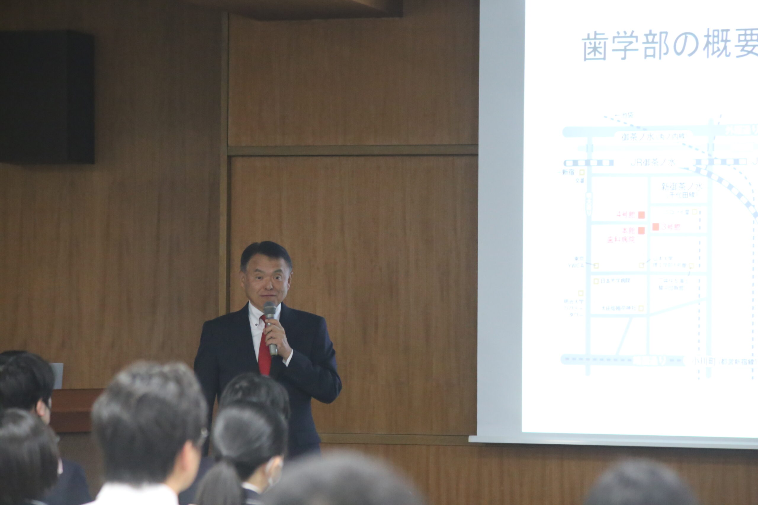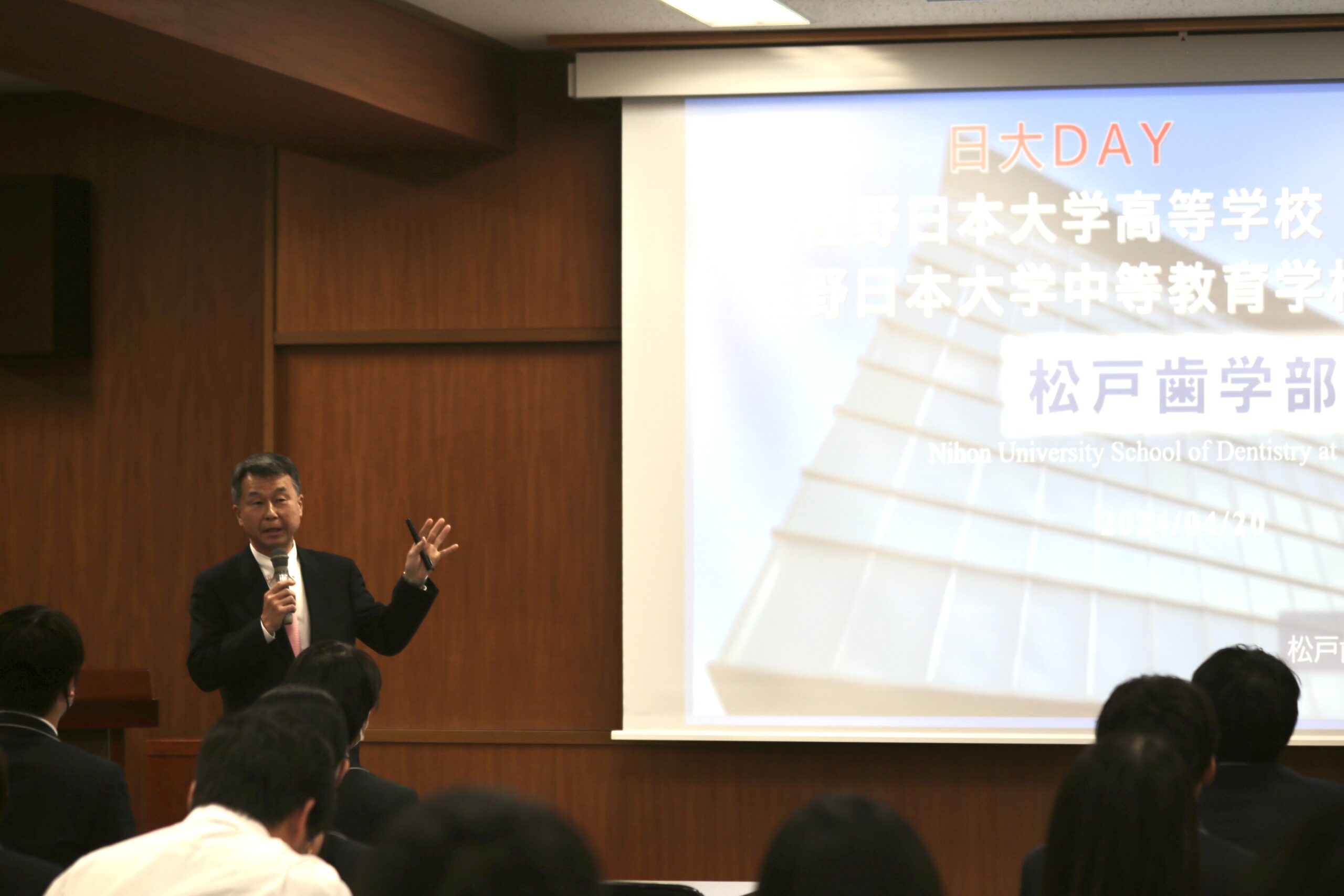 本日は、日大の各学部より学部長をはじめ講師の先生をお招きして学部説明会を行う日大DAYを実施いたしました。