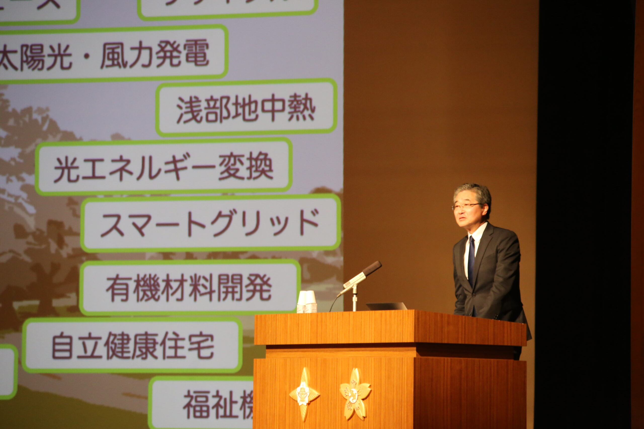 関 泰一郎学部長は公務のため、ビデオレターにてメッセージを寄せて下さいました。