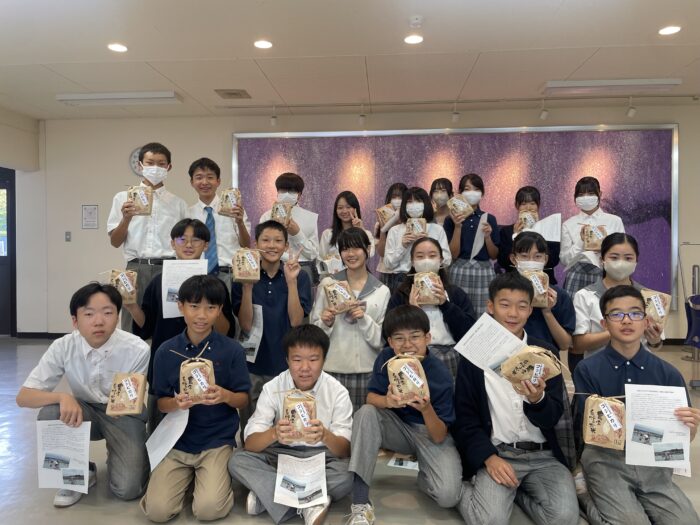 農村コースでは田植え体験をさせていただき、その際に植えたお米を学校に送ってくださいました!