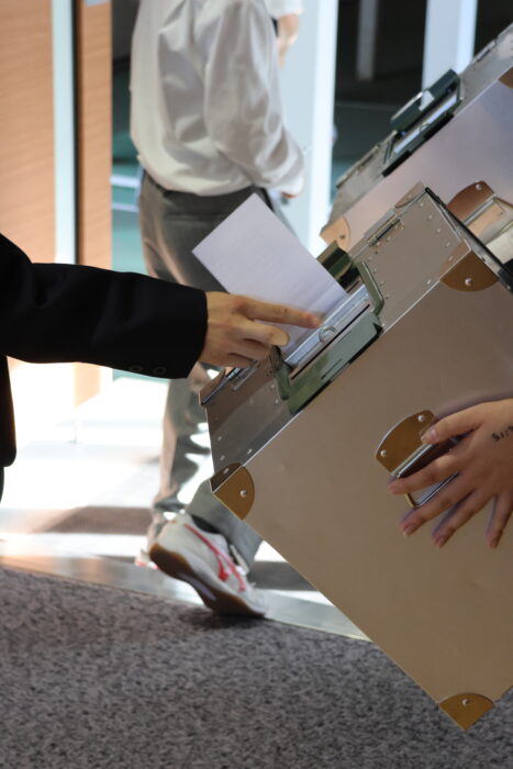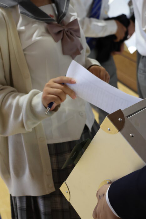 本校では、毎年佐野市の選挙管理委員会から「本物の」投票箱をお借りして選挙を実施していますが、良い緊張感を生み出していました。