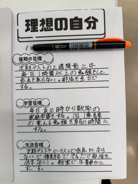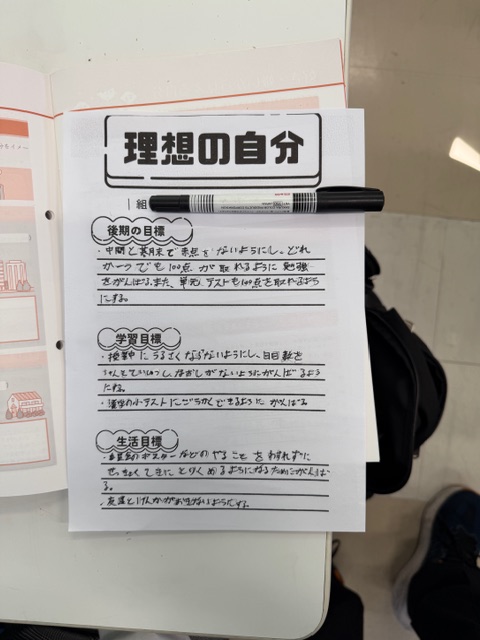 その後、「理想の自分」というタイトルで、後期の学習目標などを書く作業に取り組みましたが、全体的にこちらのほうが上手に書けている人が多かったような…。