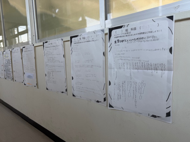 生徒たちが相談しあい、各グループで教科ごとのまとめを作成しました。