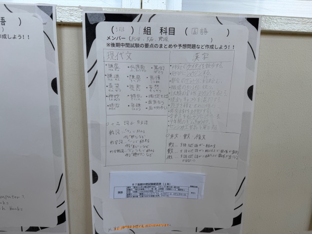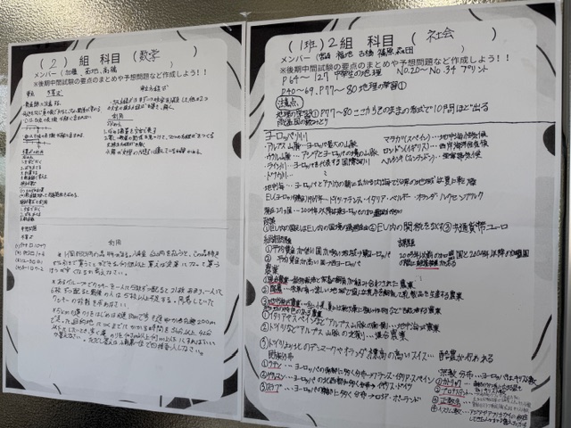 ということで、1年生は生徒による「中間試験ここが出るぞ」対策を実施。