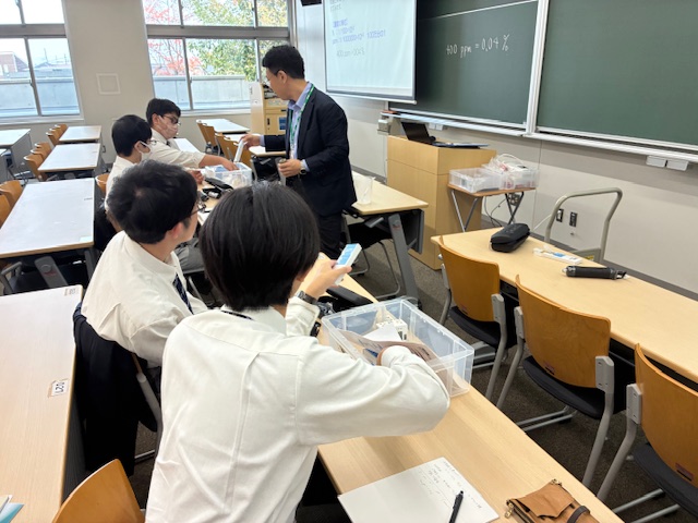 今回は、日本大学生物資源科学部の中村 篤博先生のご指導の下、二酸化炭素や酸素、PM2.5の測定実験を行わせていただきました。単に二酸化炭素が地球温暖化の原因ととらえるのではなく、実際にはそれ以外にも多くの働きとして地球環境に作用していることなどについて学ぶことができました。