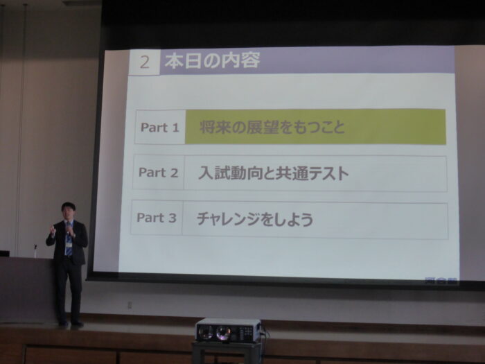 11月19日(水)、河合塾 学校教育サポート本部 栃木県担当 山内 優志 先生 をお招きし、「将来の展望をもつこと」という演題でご講演をいただきました。