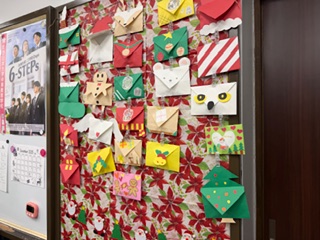 We had many guests and friends visit the room, and they enjoyed hot chocolate, muffins, and some cookies with us.