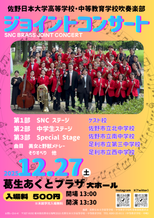 出演 本校吹奏楽部 佐野市立北中学校 佐野市立南中学校 足利市立第三中学校 足利市立西中学校