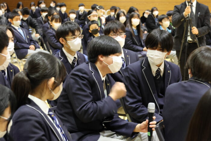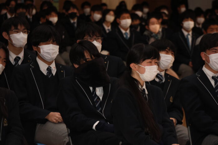 入学から本日までの6年間での人間的な成長、学力面での成長を褒めるとともに、「今日この時だけは、いろんなことを忘れ、楽しい時間を過ごしてもらいたい」と生徒に寄り添ったお話でした。