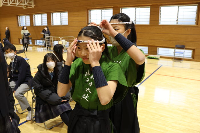 部活動で披露する生徒は、その準備も行っています。