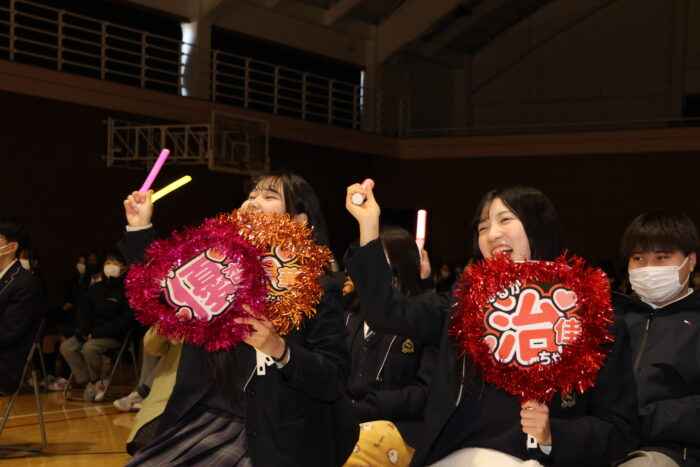 予餞会後半は部活動単位ではなく、有志グループによる歌やダンスなどが多くなり、会場はますますヒートアップしていきます。