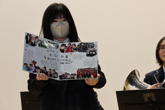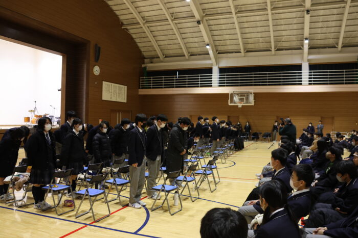 お返しに、在校生からは千羽鶴が贈呈され、本日の予餞会が終了となりました。