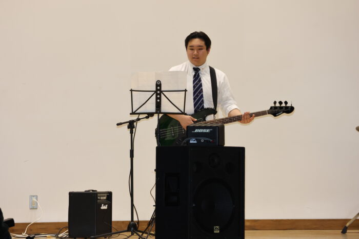 有志のトリを務めるのは5年男子によるバンド。さぁいくぞ、と思った矢先に機材トラブル・・・でも、みんなの暖かい雰囲気でやり切ってくれました。