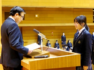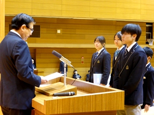 本日はまず後期開始からこれまでに活躍した生徒の賞状伝達が行われました。