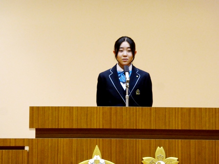 続いて、校長先生からの講話です。今年最後のお話に、生徒たちは耳を傾けました。