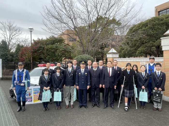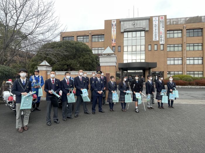 2月26日(木)、登校時間に合わせて本校生徒会が佐野警察署・佐野日大高校の野球部と協同で交通ルール啓発運動を行いました。