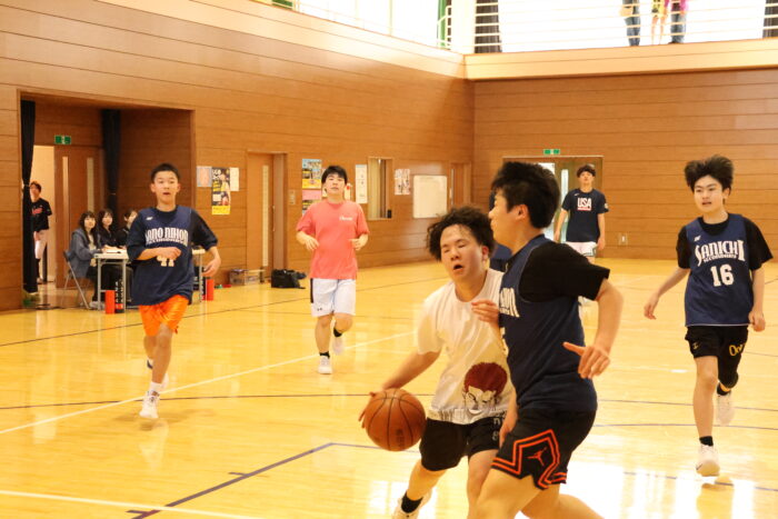 本日、体育館では男子バスケットボール部による引退試合が行われました。