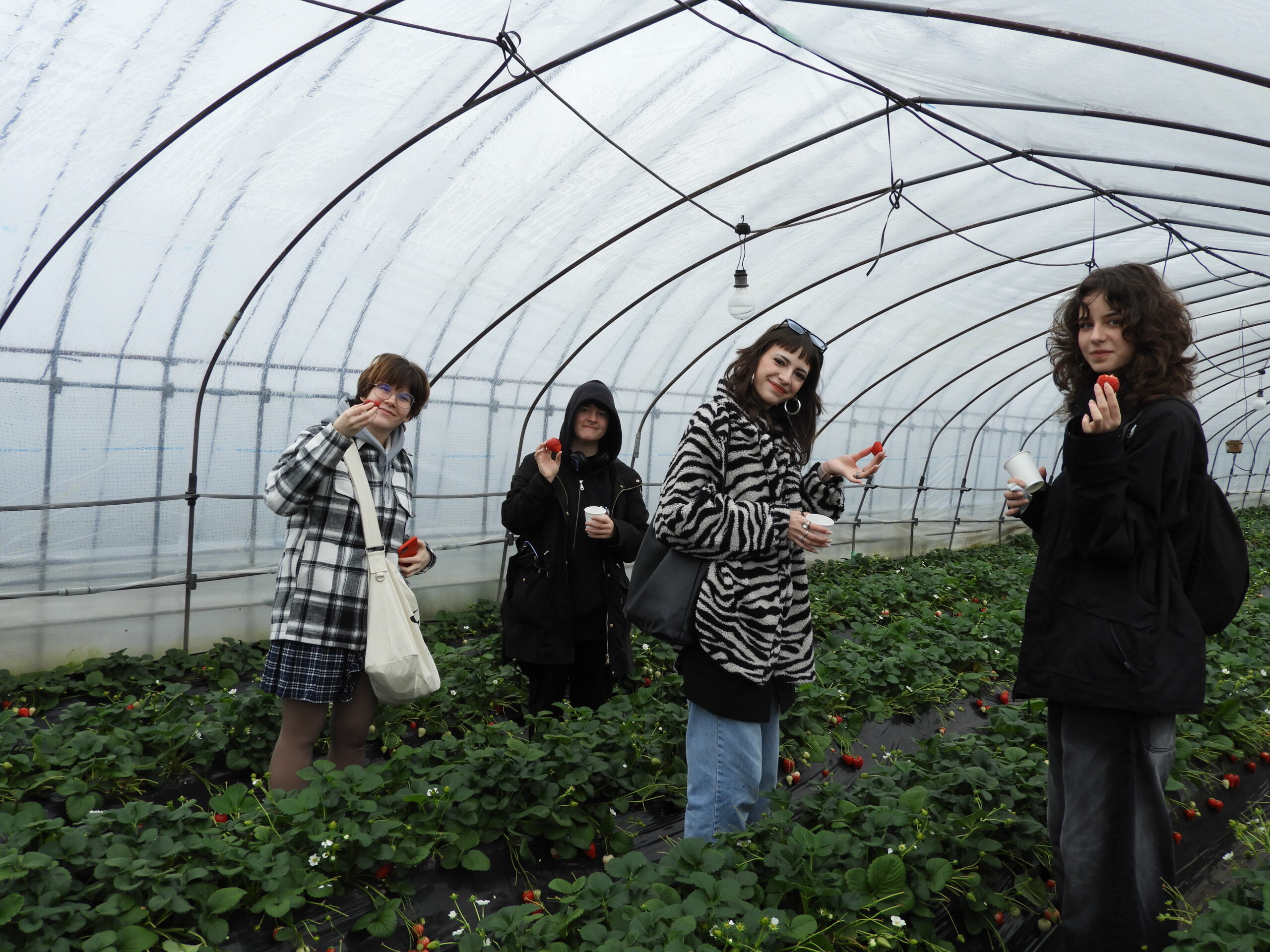 3月12日、交流2日目は、いちご狩りとハンガリー出身の芸術家ワグナー・ナンドールのギャラリー見学、益子焼のオカリナの絵付け体験をしました。ハンガリーでもベリー・ピッキング体験はあるそうですが、日本のいちごの新鮮さと甘さに、フンファルビ高校の生徒たちも本校の生徒たちも舌鼓を打っていました。