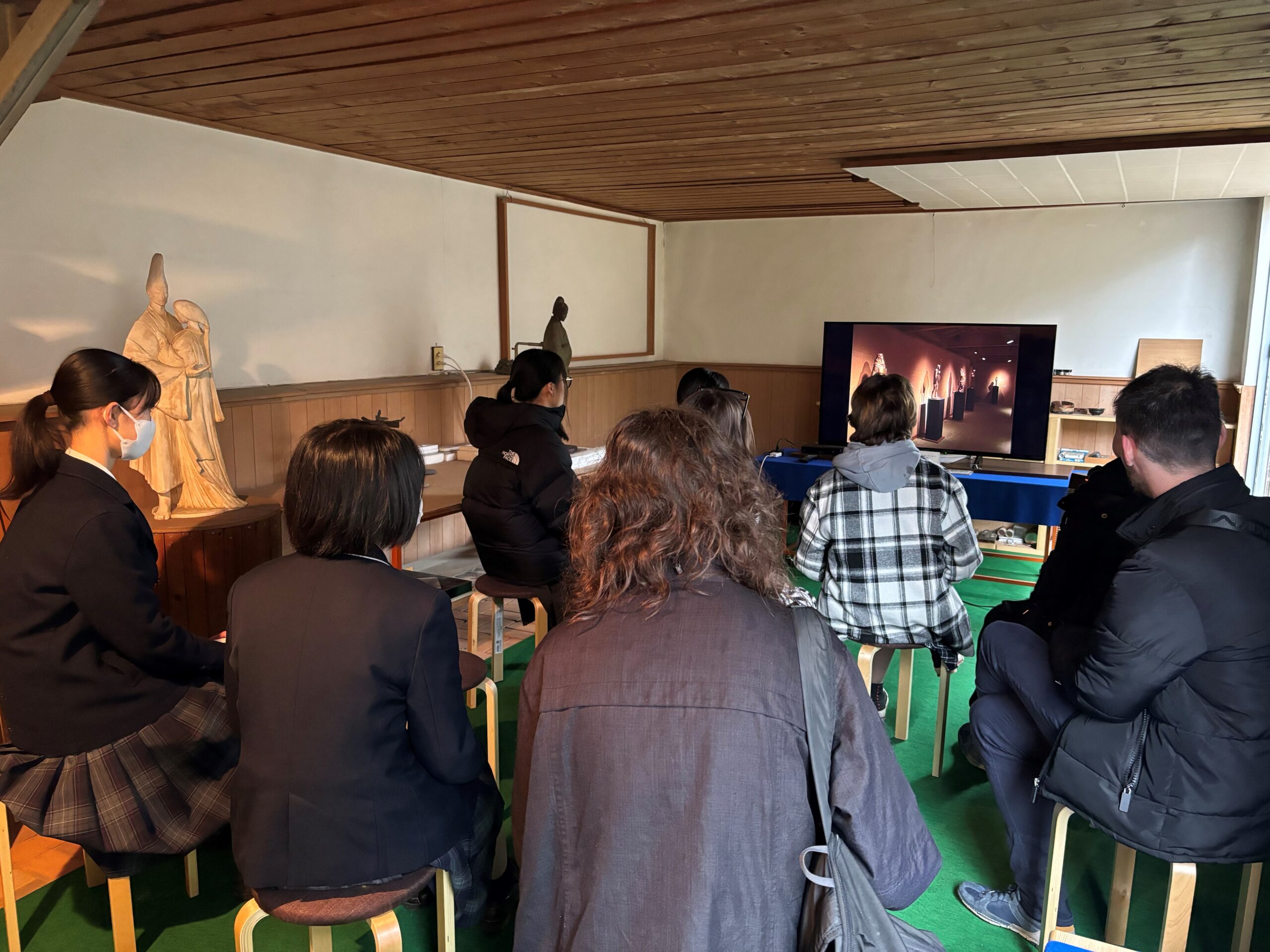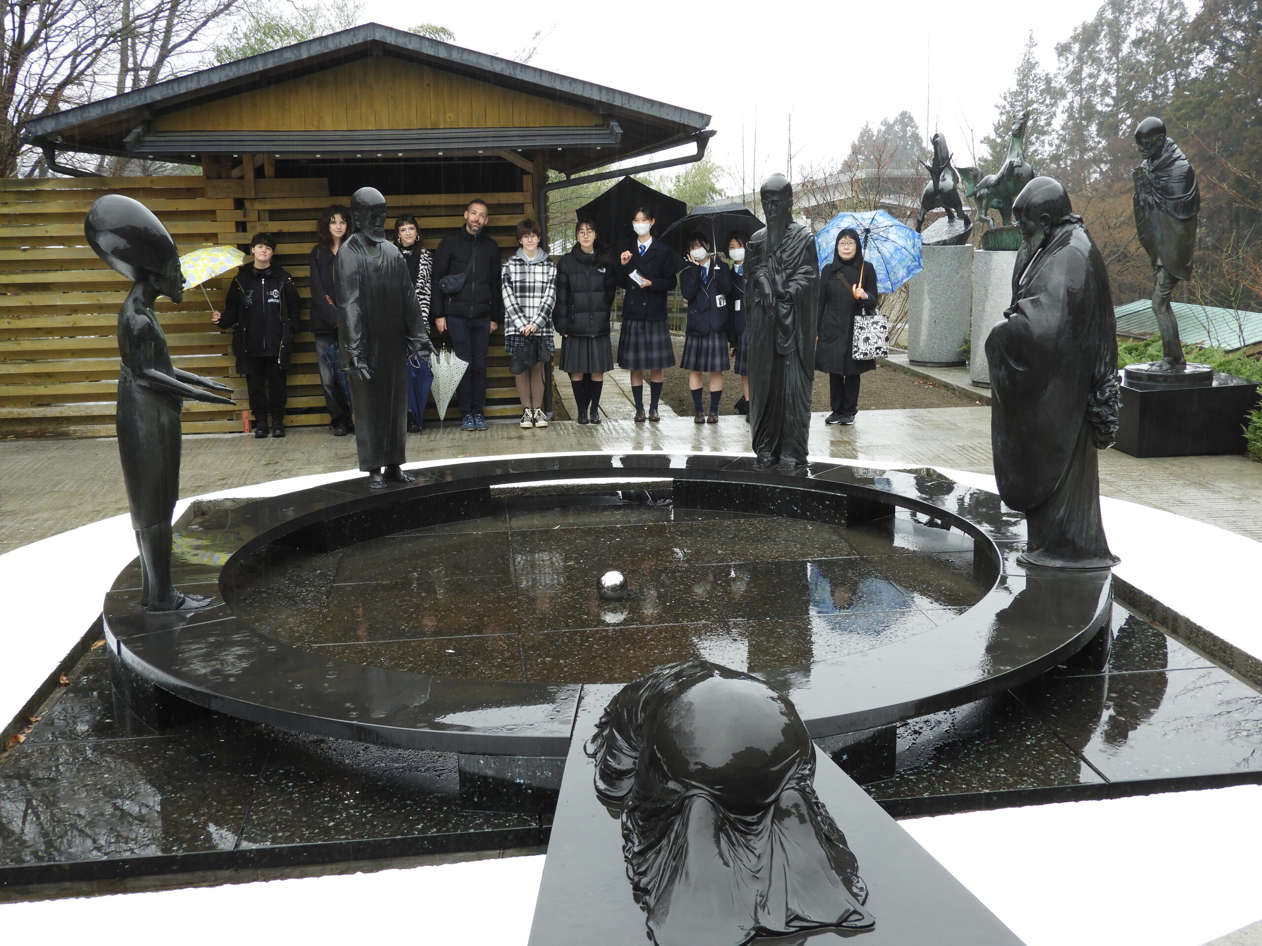 たっぷりいちごを食べた後は、ハンガリーで生まれ、第二次世界大戦、ハンガリー動乱後、日本の益子に移り住んだワグナー・ナンドール氏のギャラリーを見学しました。ナンドール氏は様々な哲学を学び、それを自分の彫刻作品で表現した芸術家です。ハンガリーと益子には彼の作品が数多く残されています。生徒たちは彼の考え方に触れようと、学芸員の方の説明を聞き作品を見学して回りました。
