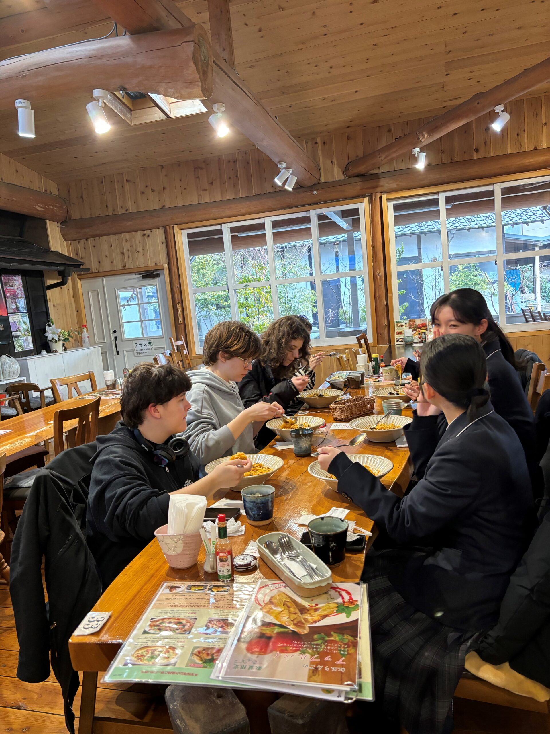あいにくの雨の中、様々な体験をした後の温かい昼食はとても美味しいものでした。