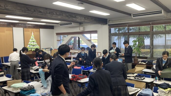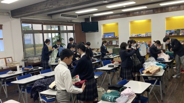 今日の委員会活動で、服のチカラプロジェクトの梱包作業を行いました。