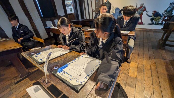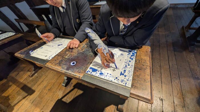 そこで、羽ペンを使って文字を書き、ラテン語を教えてもらいました。