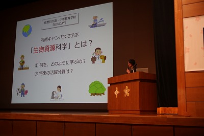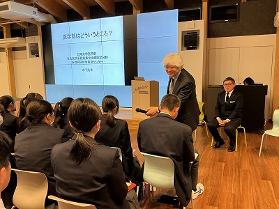 4月25日(土)、高等学校と合同で、中等教育学校4年全員、5年希望者を対象に、高大連携教育の一環として日大DAYと称し、日大の各学部より学部長をはじめ講師の先生をお招きして合同説明会を実施しました。